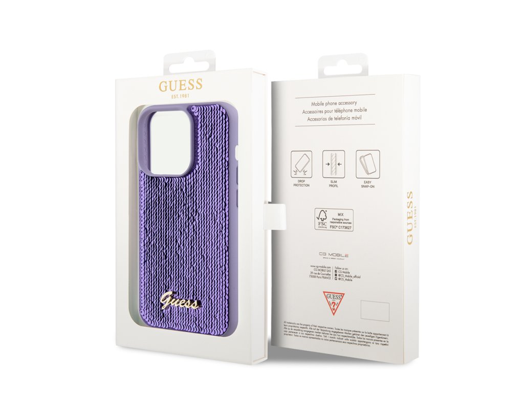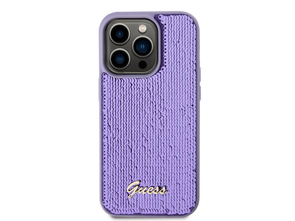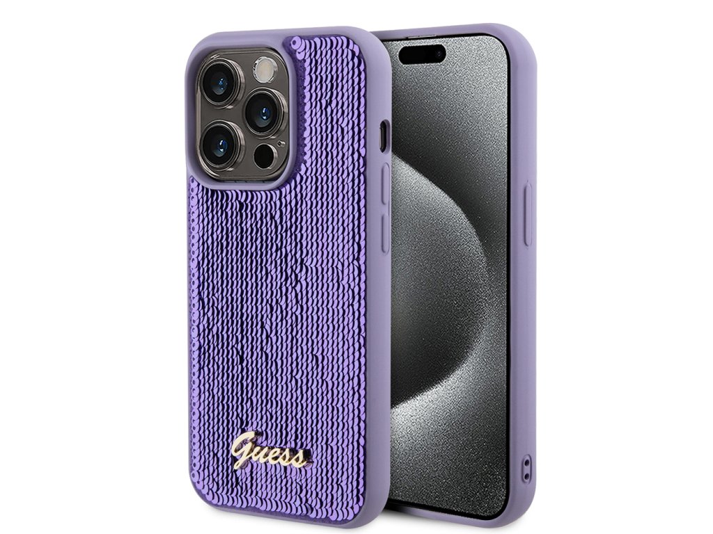 Kryt Guess Sequin Script Metal pro iPhone 15 Pro (GUHCP15LPSFDGSU) - fialový