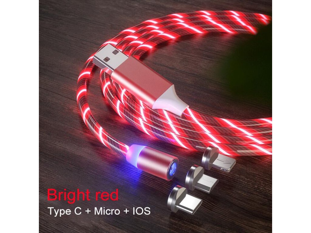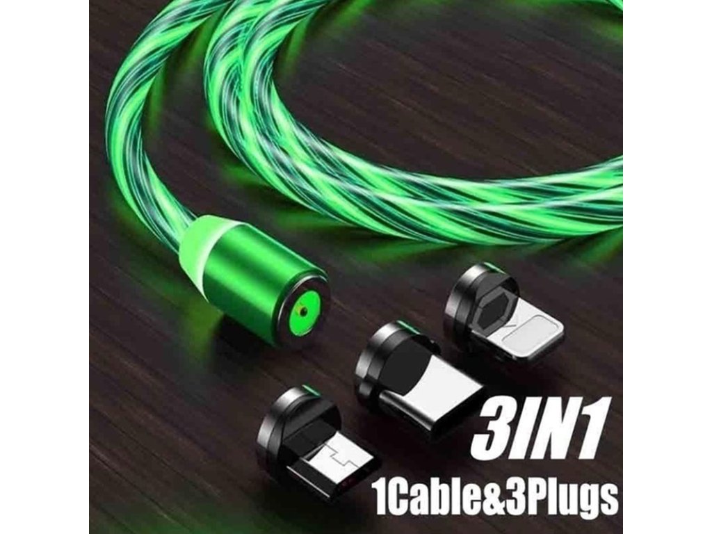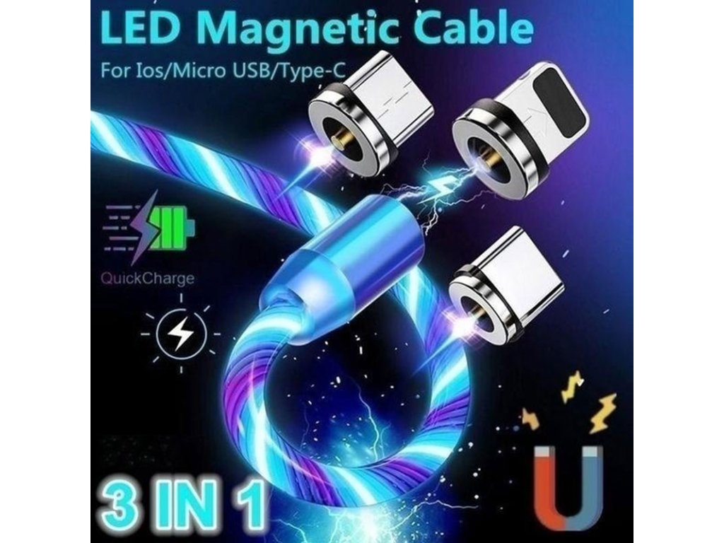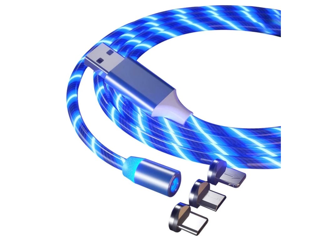 LED svietiaci magnetický USB kábel 3v1 pre iPhone/Android 1M