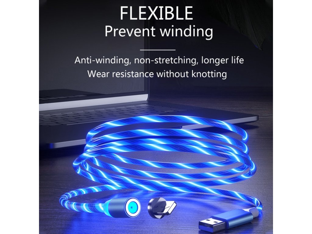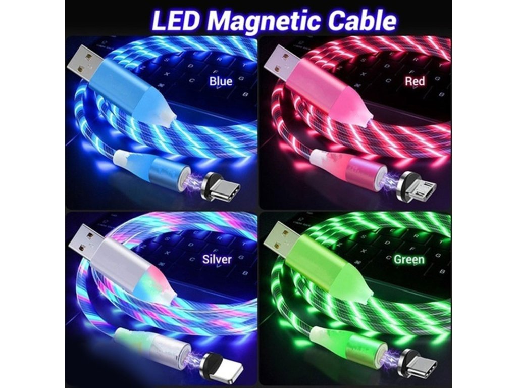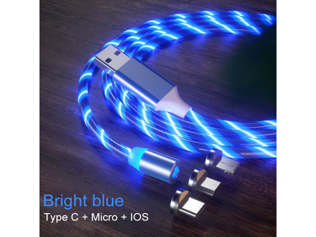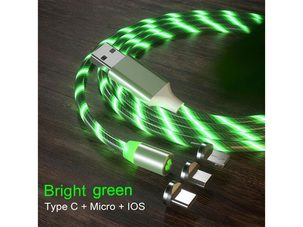 LED svietiaci magnetický USB kábel 3v1 pre iPhone/Android 1M