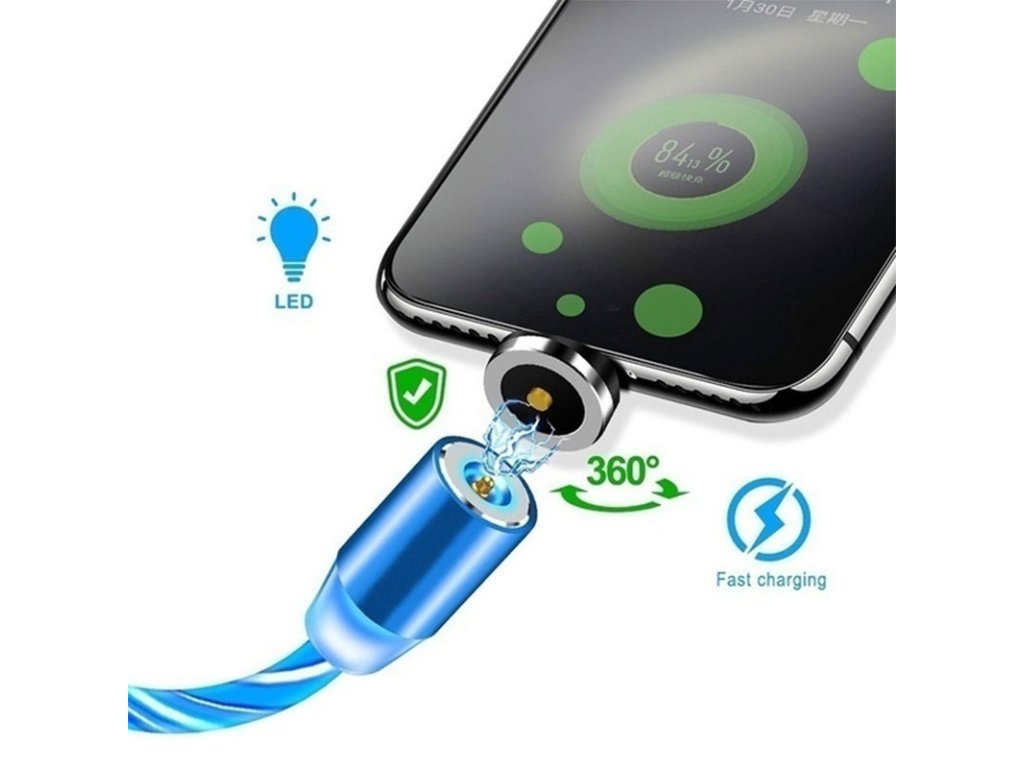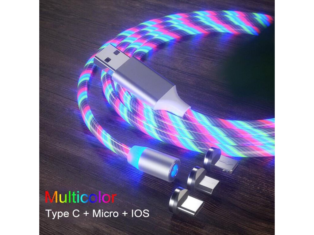 LED svítící magnetický USB kabel 3v1 pro iPhone/Android 1M