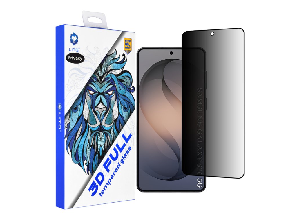 Lito – 3D Full Cover Privacy ochranné sklo pro Samsung Galaxy S26 – černé
