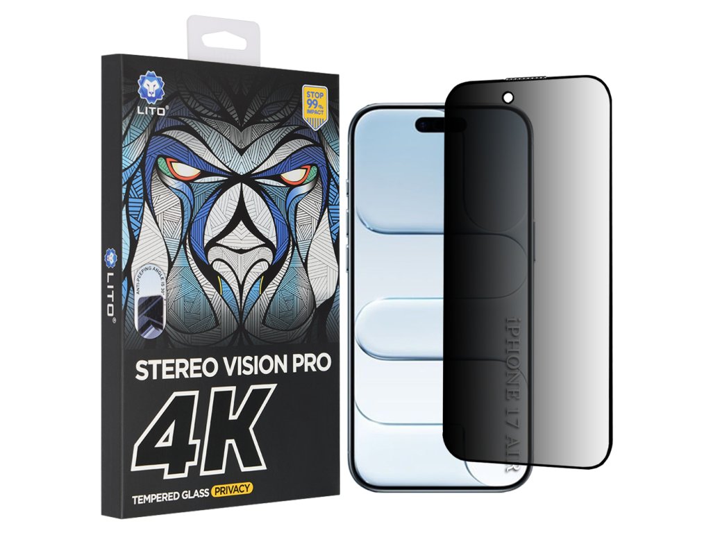 Lito – D+ Max 4K Privacy ochranné sklo pro iPhone 17 Air – černé