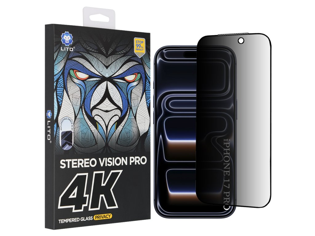 Lito – D+ Max 4K Privacy ochranné sklo pro iPhone 17 Pro – černé