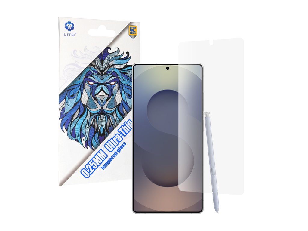 Temperované sklo Lito 9H Tempered Glass pro Samsung Galaxy S25 Ultra, průhledné, které dokonale odráží barvy zobrazené na obrazovce, nijak neovlivňuje citlivost displeje.
