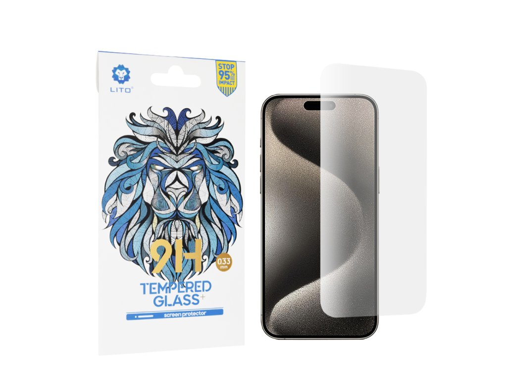 Tvrzené sklo Lito 9H pro iPhone 15 Pro Max, transparentní, které dokonale odráží barvy zobrazené na obrazovce, nijak neovlivňuje citlivost displeje.