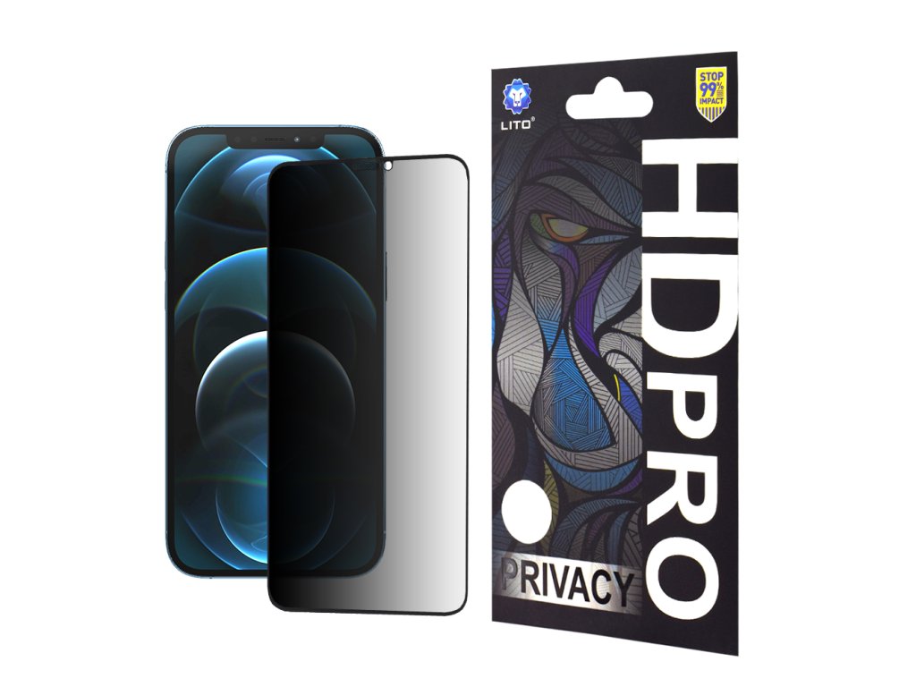 Lito HD Pro Privacy tvrzené sklo pro iPhone 12 Pro Max – černé (s ochranou soukromí)