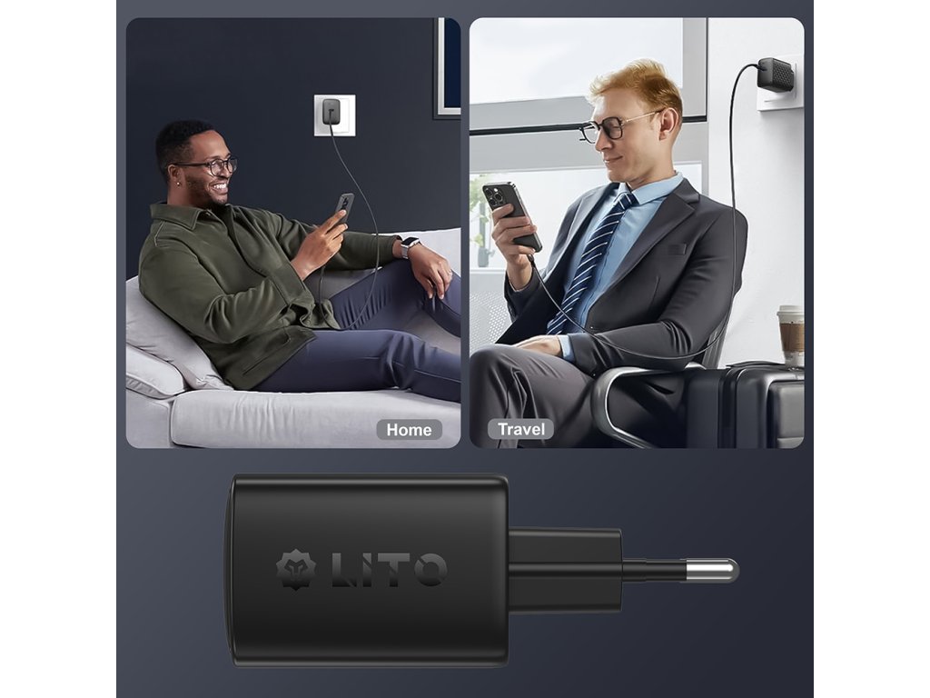 Lito - Wall Charger LC13 síťová nabíječka (USB-C, PD20W, GaN technologie, nehořlavý PC materiál, EU vidlice) - černá