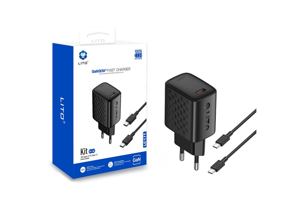 Lito - Wall Charger LC17 síťová nabíječka (USB-C výstup, PD30W, GaN technologie, nehořlavý PC materiál, EU vidlice) - černá