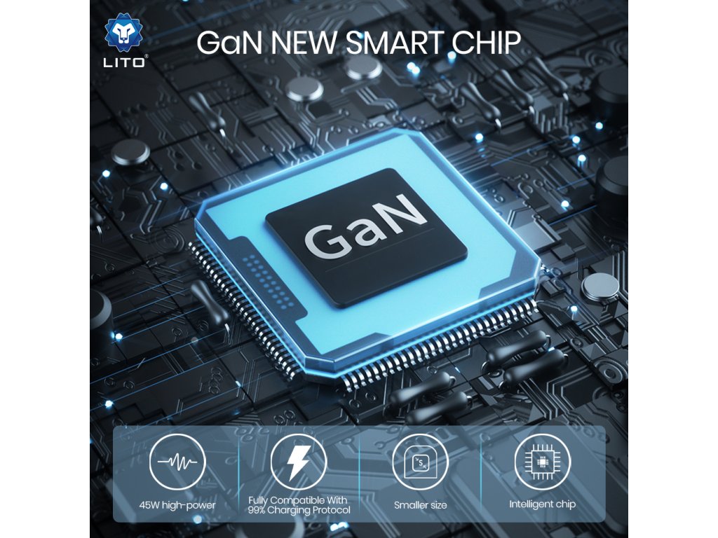 Lito - Wall Charger LC20 síťová nabíječka (USB-C výstup, PD45W, GaN technologie, nehořlavý PC materiál, EU vidlice) - černá