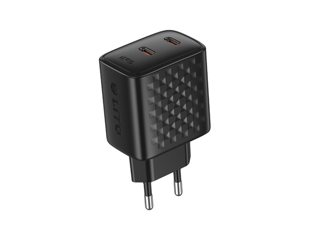 Lito - Wall Charger LC22 síťová nabíječka (2× USB-C výstup, PD45W, GaN technologie, nehořlavý PC materiál, EU vidlice) - černá