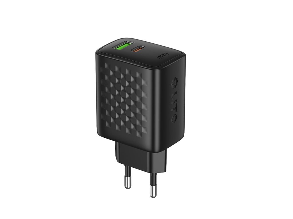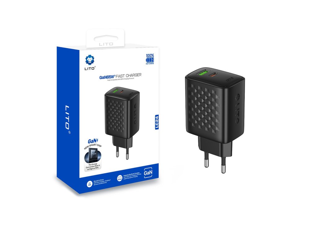 Lito - Wall Charger LC24 síťová nabíječka (USB-C+USB, PD65W, GaN technologie, nehořlavý PC materiál, EU vidlice) - černá