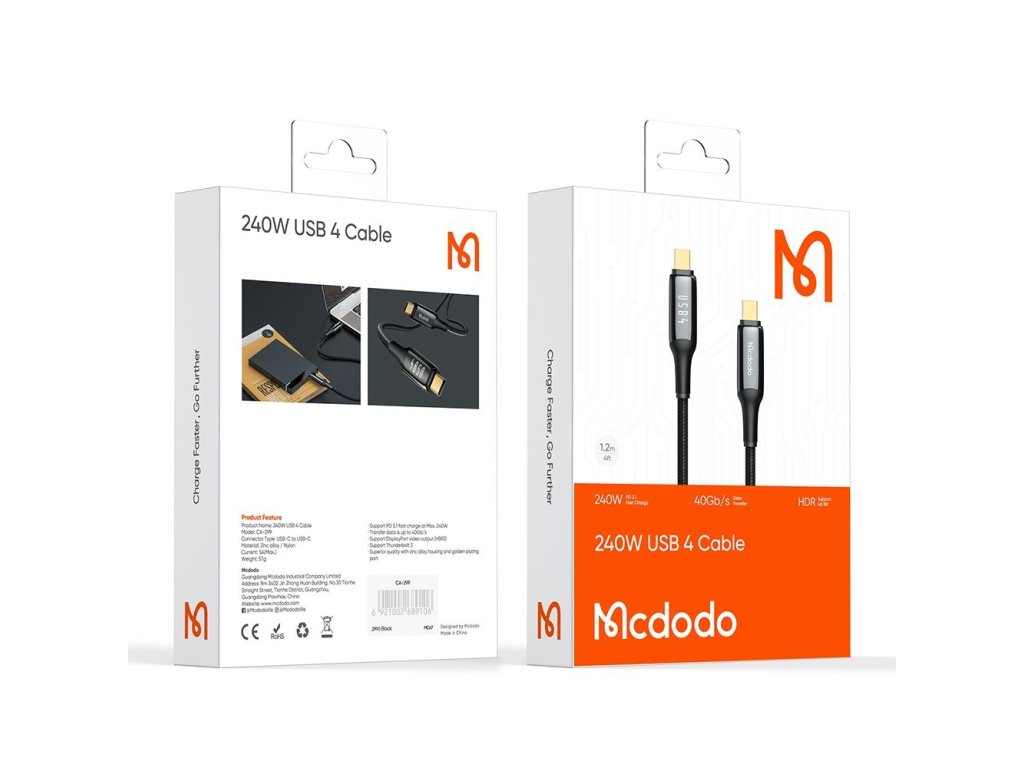Kabel Mcdodo nabízí ultra-rychlé nabíjení a přenos dat až 40 Gb/s. Integrovaný čip E-Marker optimalizuje výkon a stabilitu, aby poskytoval bezpečné a stálé připojení při každém použití.