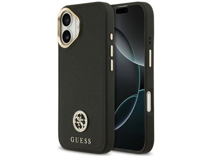 Guess – Grained Gold Ring MagSafe pouzdro na iPhone 17 – černé