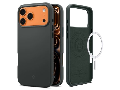 Spigen – Silicone Fit MagSafe ochranný obal na iPhone 17 Pro Max – zelený Abyss