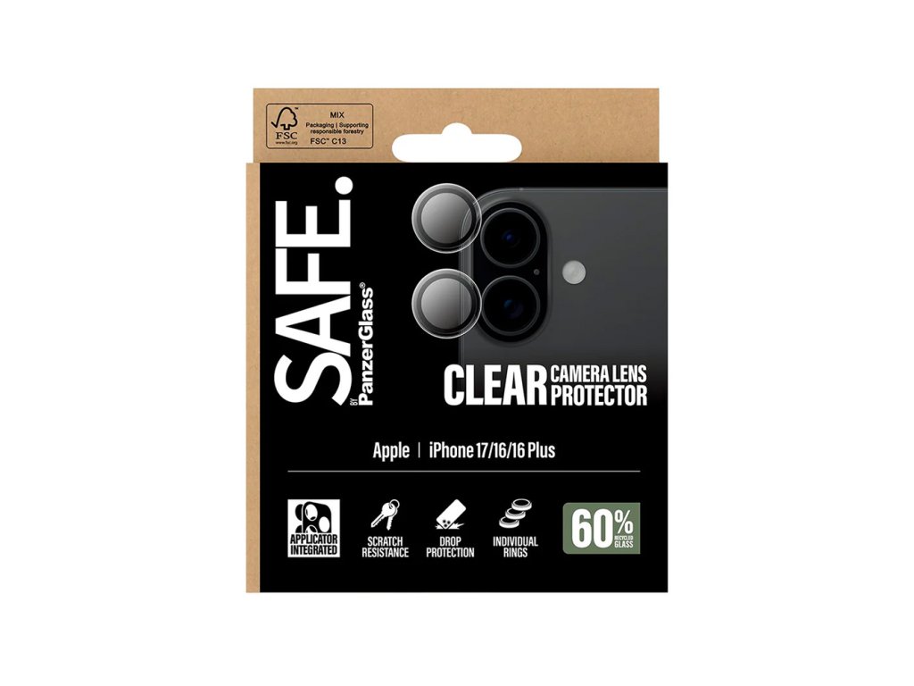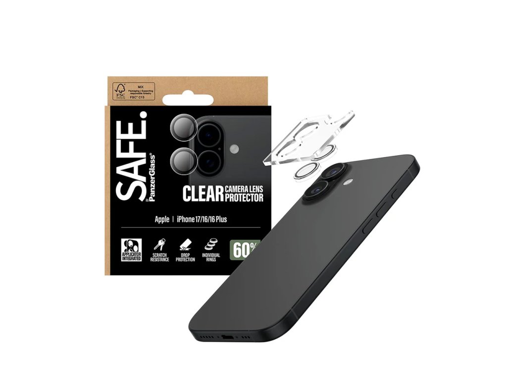PanzerGlass - SAFE. Camera Lens Protector ochrana kamery pro iPhone 17 / iPhone 16 / iPhone 16 Plus - čirá