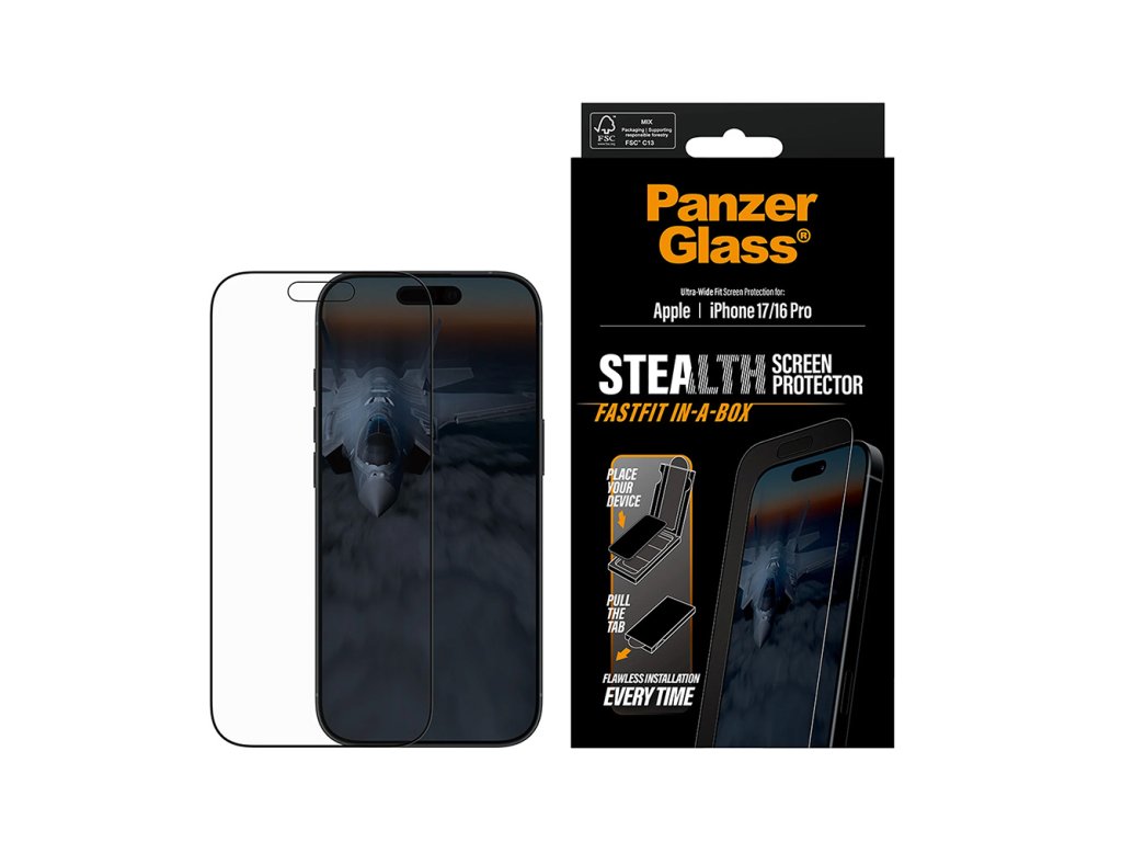 PanzerGlass - Ultra-Wide Fit Stealth Screen Protector FASTFIT IN-A-BOX ochranné sklo pro iPhone 17 / iPhone 16 Pro - černé