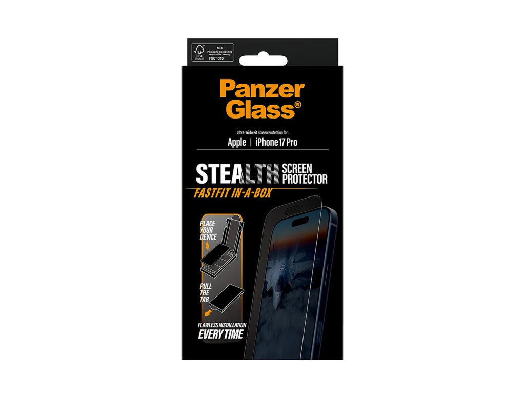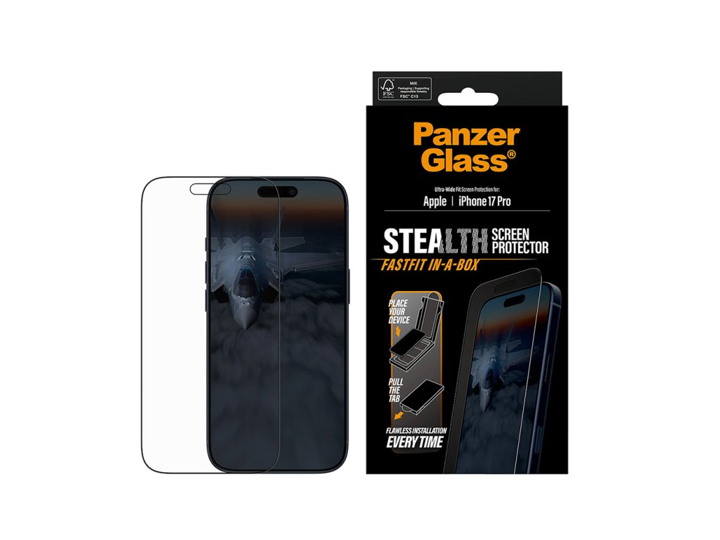 PanzerGlass - Ultra-Wide Fit Stealth Screen Protector FASTFIT IN-A-BOX ochranné sklo pro iPhone 17 Pro - černé