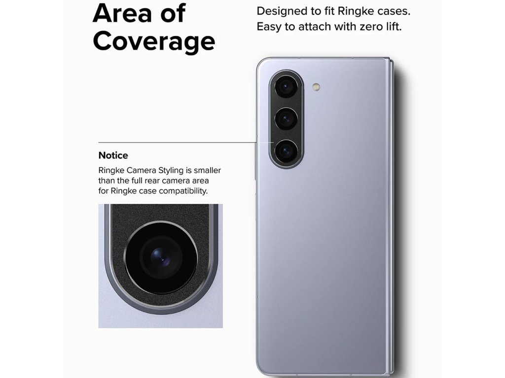 - Vyrobeno z nerezové oceli, ochranný kryt typu fólie pro objektiv kamery od Ringke představuje velmi elegantní způsob, jak zajistit tuto část vašeho zařízení Samsung Galaxy Z Fold5.