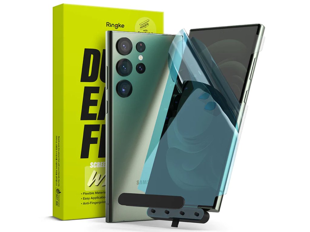 Ochranná fólie od Ringke, Dual Easy Wing Self Dust Removal pro Samsung Galaxy S23 Ultra je speciálně navržena tak, aby ti mohla nabídnout dlouhou životnost, pevné uchycení bez vzduchových bublin a snadnou montáž, bez ohledu na osobu. Vyzkoušej ji a budeš zcela spokojen!