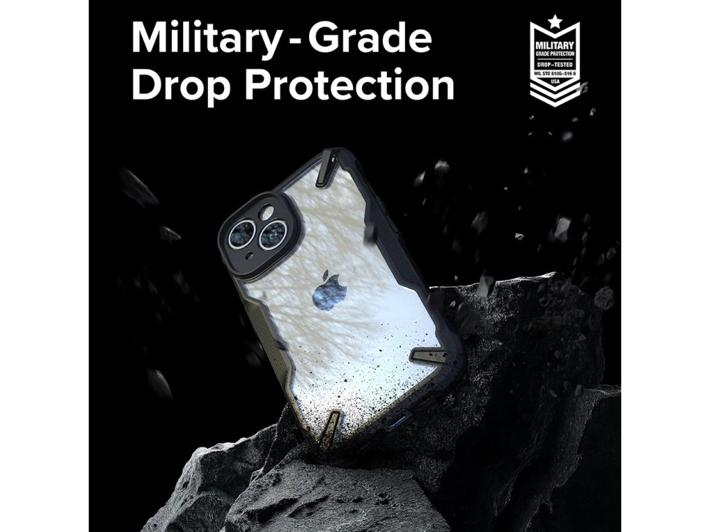 Obal na iPhone 15 Plus od Ringke splňuje standard ochrany MIL-STD 810G-516.6. Toto osvědčení je získané poté, co byl telefon podroben 26 pádům a díky antisokovému obalu zůstal neporušený.