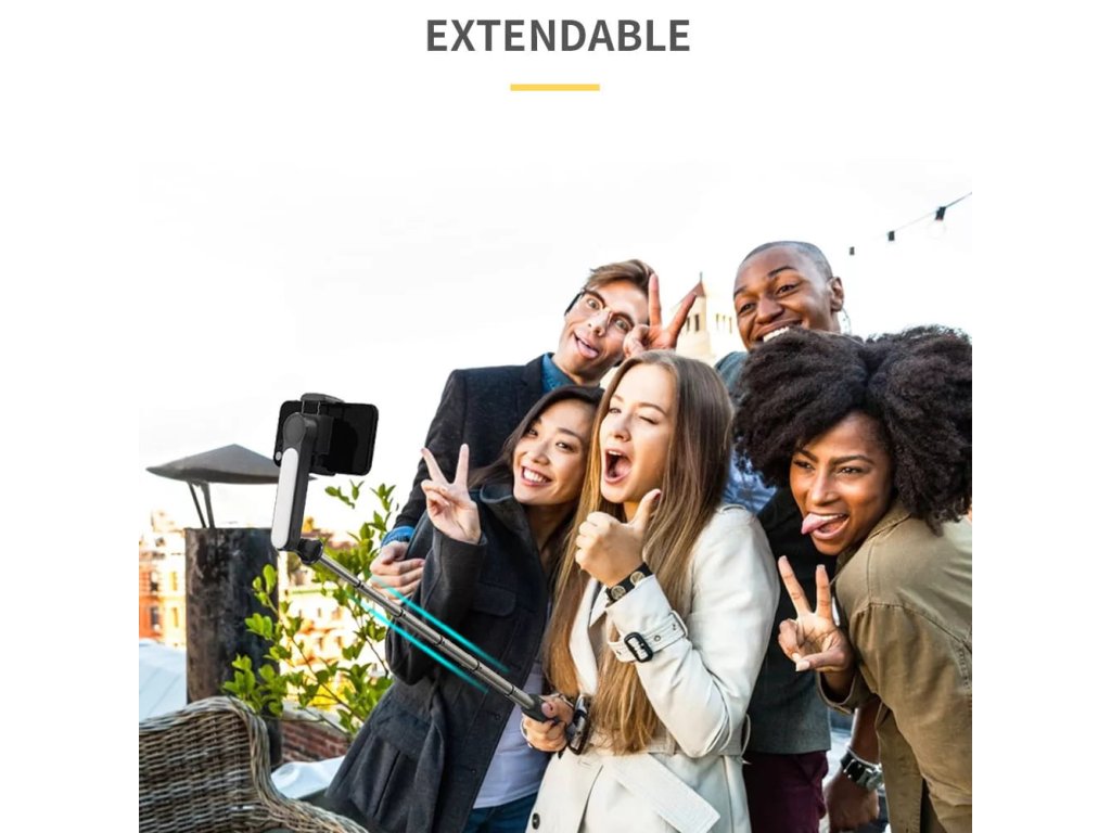 Tato profesionální selfie tyč má integrované tlačítko, které vám pomáhá přepínat mezi režimem gimbal a selfie. Máte po ruce prémiovou bezdrátovou selfie tyč.