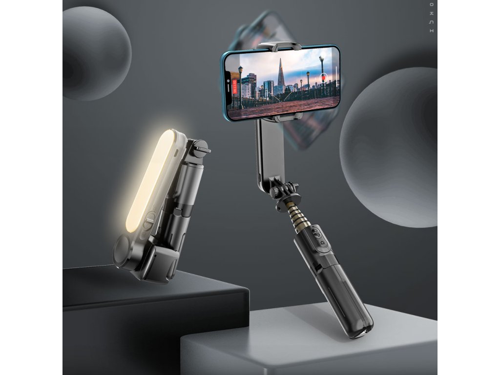 Selfie tyč (L09) - dálkové ovládání Bluetooth, držák na stativ a stabilizátor gimbalu - černá