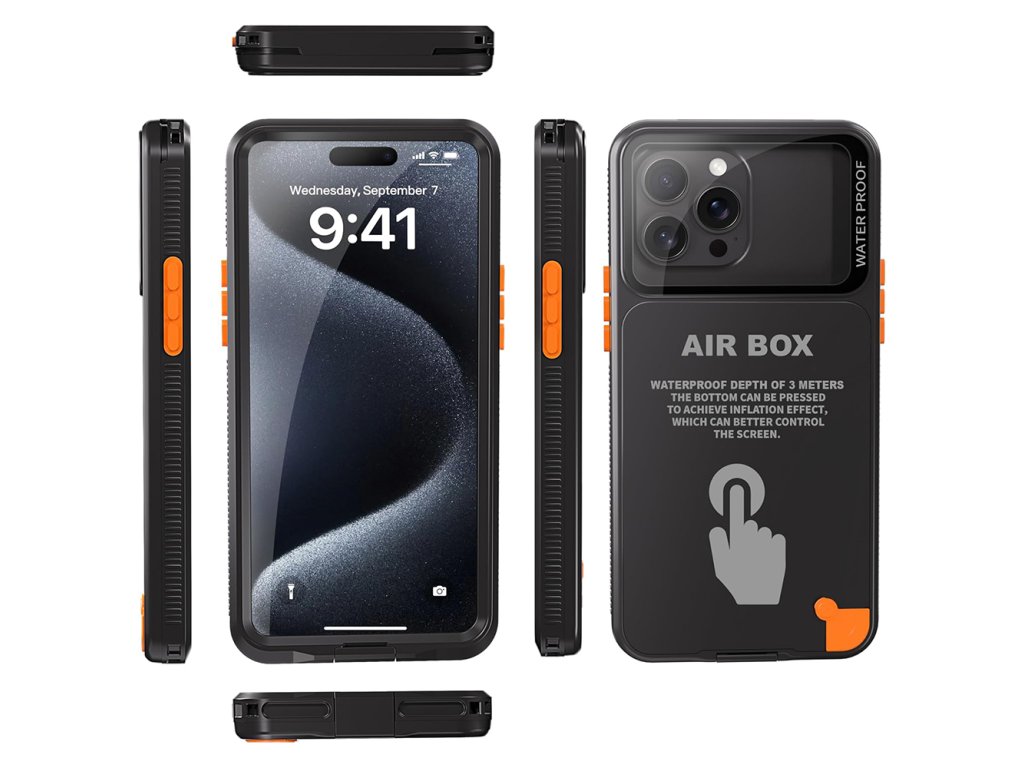 ShellBox - AirBox Waterproof IP68 vodotěsné pouzdro pro iPhone 12 Pro Max / 13 Pro Max / 14 Pro Max / 15 Pro Max / 16 Pro Max / 15+ / 16+ (6,7") - černé