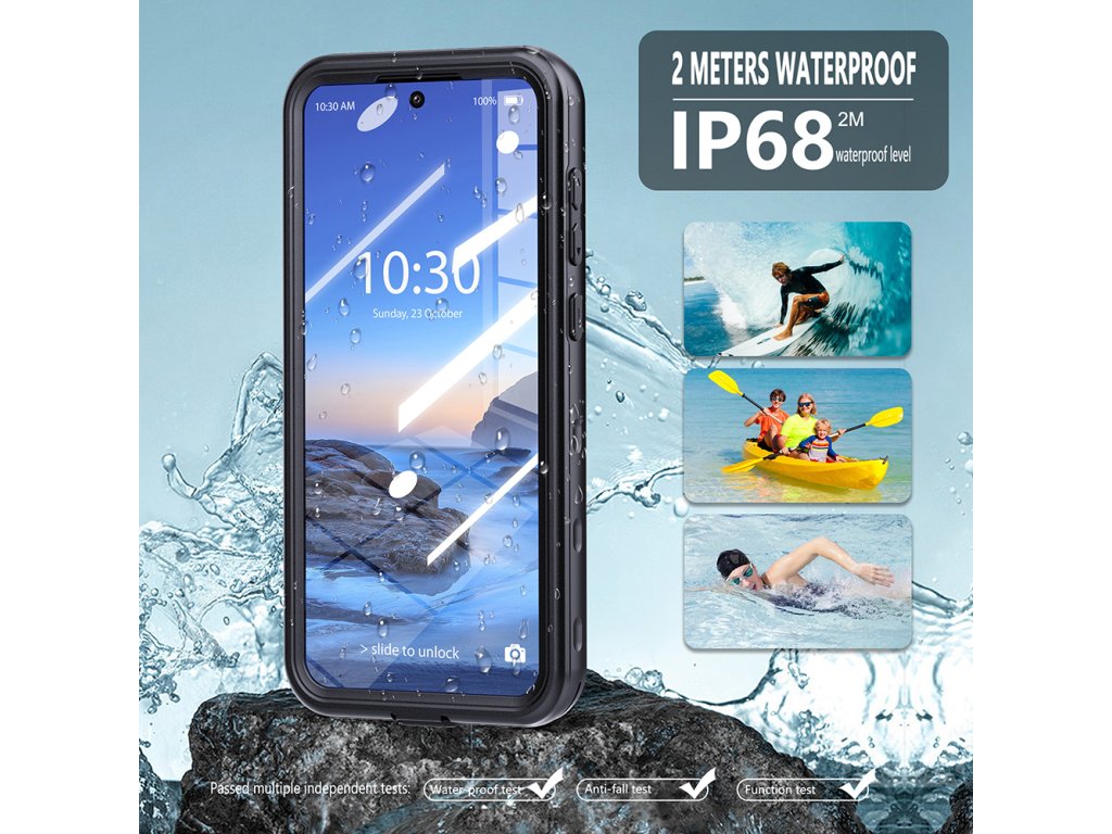 Vodotěsné pouzdro je pečlivě vyrobeno, aby poskytovalo vysokou úroveň ochrany. Každé tlačítko, port a kamera jsou pečlivě utěsněny hermeticky. Takže ani kapka vody nebo prach nemohou proniknout k vašemu telefonu. Vyzkoušejte také pouzdro s těsným uzávěrem!