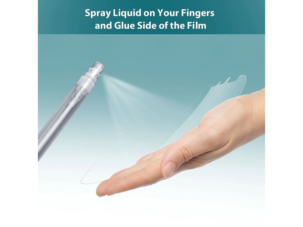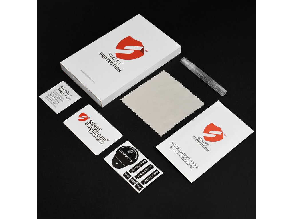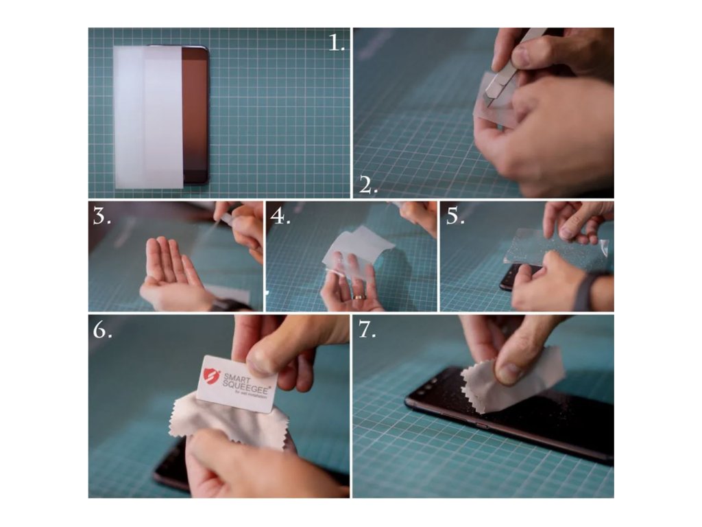 Po správném a konečném umístění fólie použijeme mikrovláknovou látku a karty Smart Squeegee k úplnému odstranění přebytečné kapaliny a vzduchu. Proces spočívá v jemném stisknutí ze středu displeje k jeho okrajům.