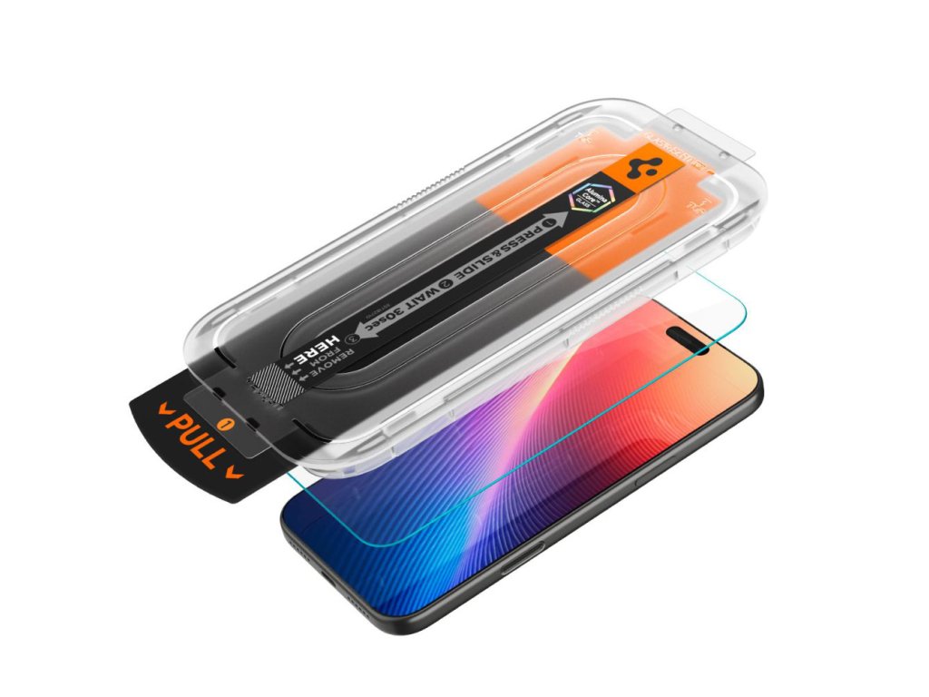 Spigen – Glas.tr EZ-FIT Pro ochranné sklo pro iPhone 16 Pro / iPhone 17 / iPhone 17 Pro – Privacy