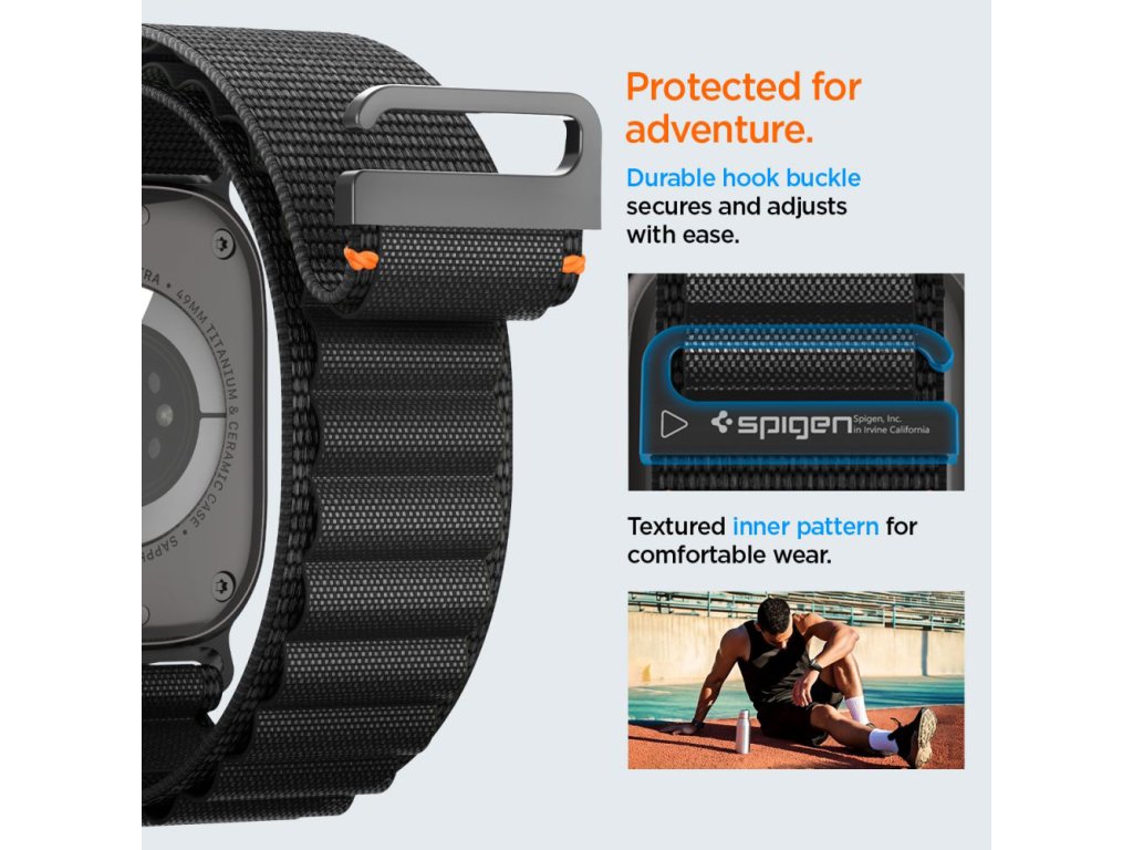 Spigen – WBF1 řemínek na Apple Watch 6 / 7 / 8 / 9 / 10 / SE / SE 2 / Ultra / Ultra 2 (44/45/46/49mm) – černý