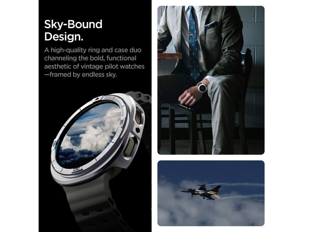 Spigen - Bezel Tune Pro Pilot ocelový rámeček pro Samsung Galaxy Watch8 44 mm - stříbrný