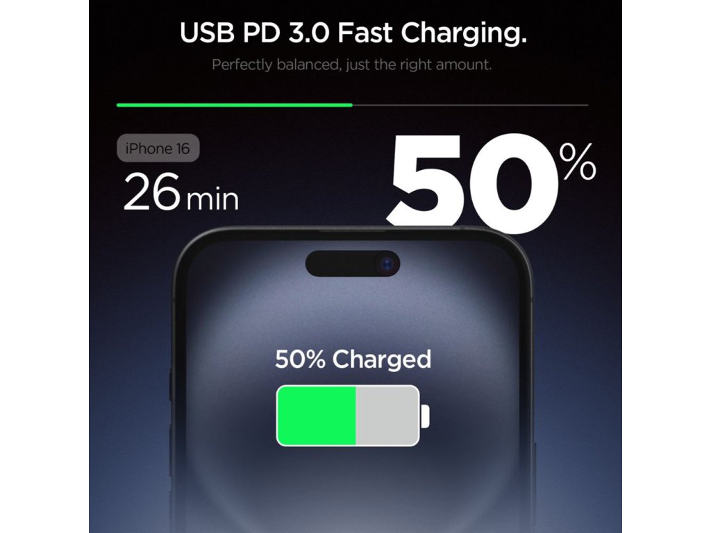 - Vyrobena z vysoce kvalitního polykarbonátu, nabíječka Type-C od Spigen zajišťuje odolnost proti nárazům a jinému poškození.