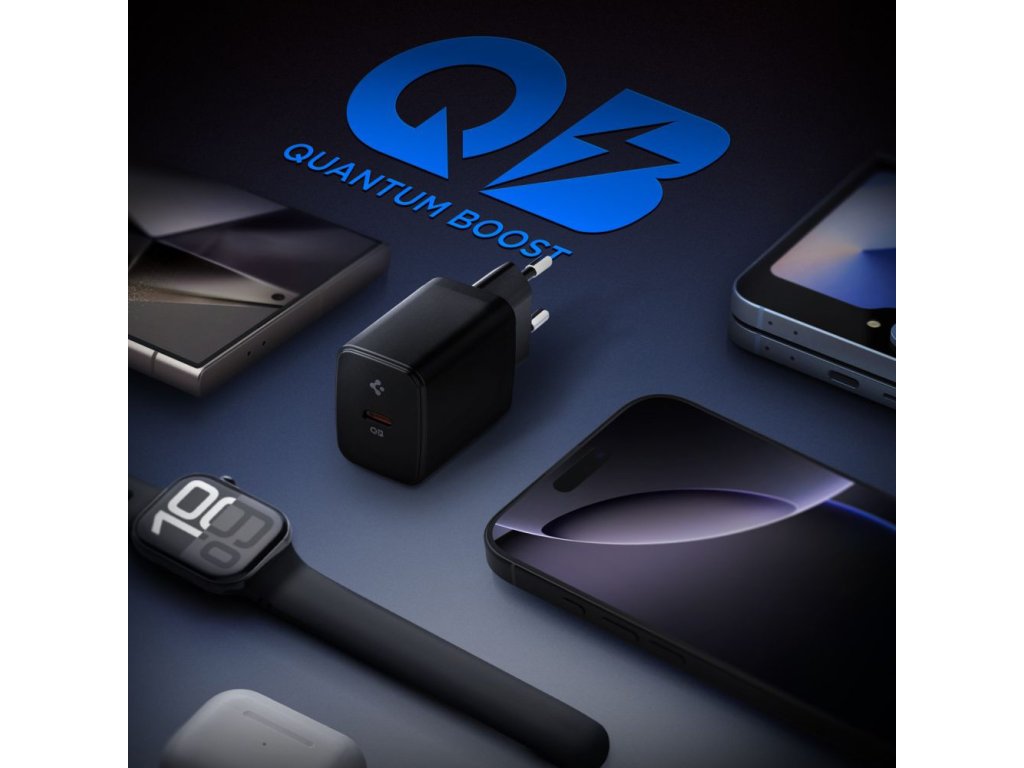 Spigen Essential síťová nabíječka (EE201EU) - USB-C, GaN, PD20W, Quantum Boost - černá