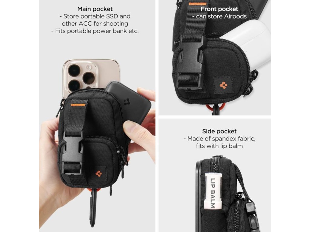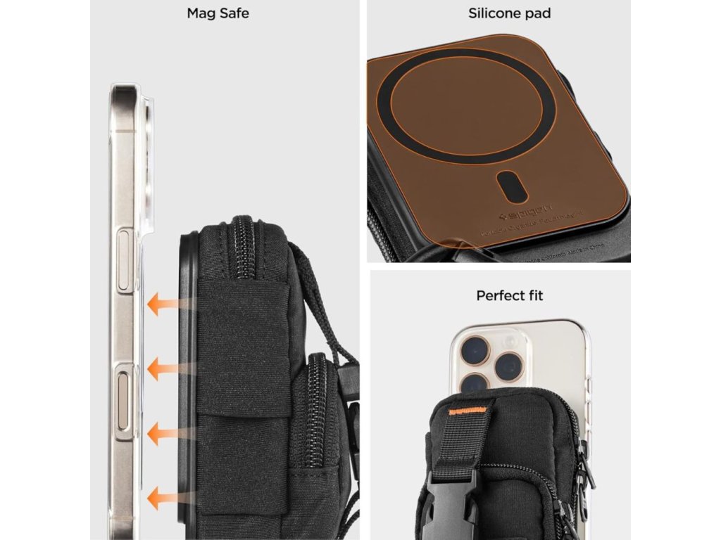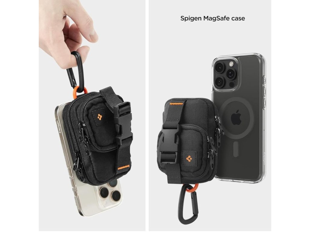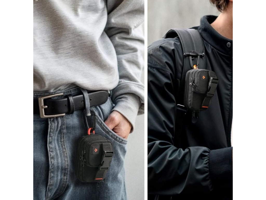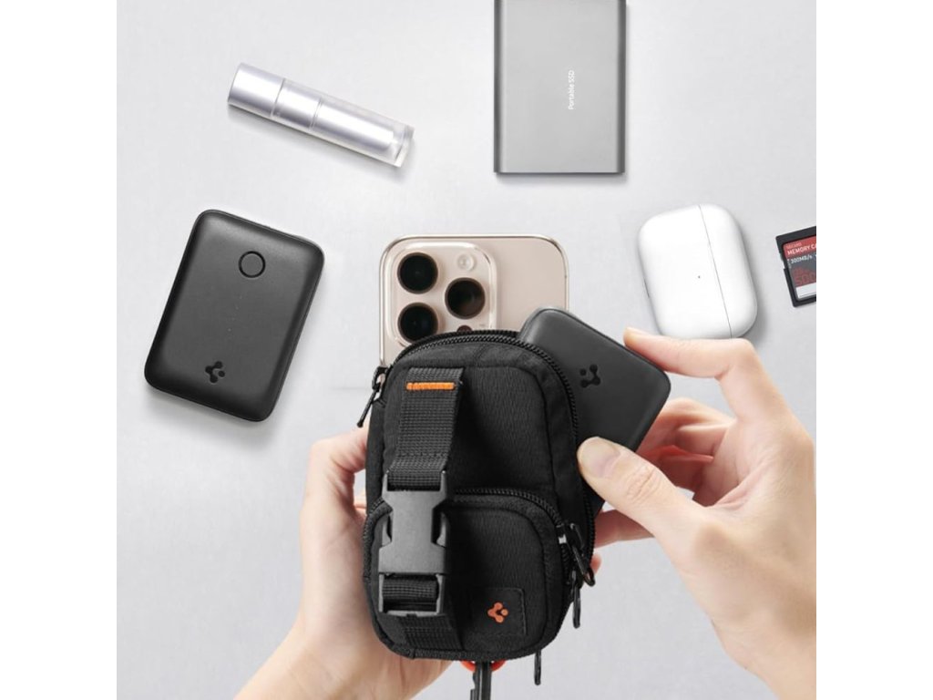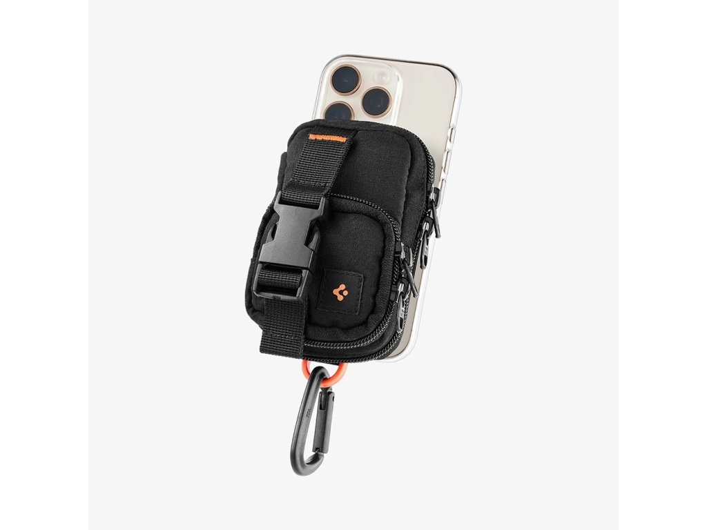 Spigen - Phone Pouch Snap Zip MagSafe organizér/peněženka (držák karet, AirPods, přihrádky, opasek, univerzální) - černý