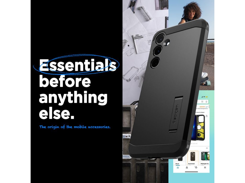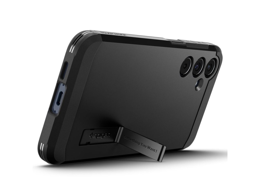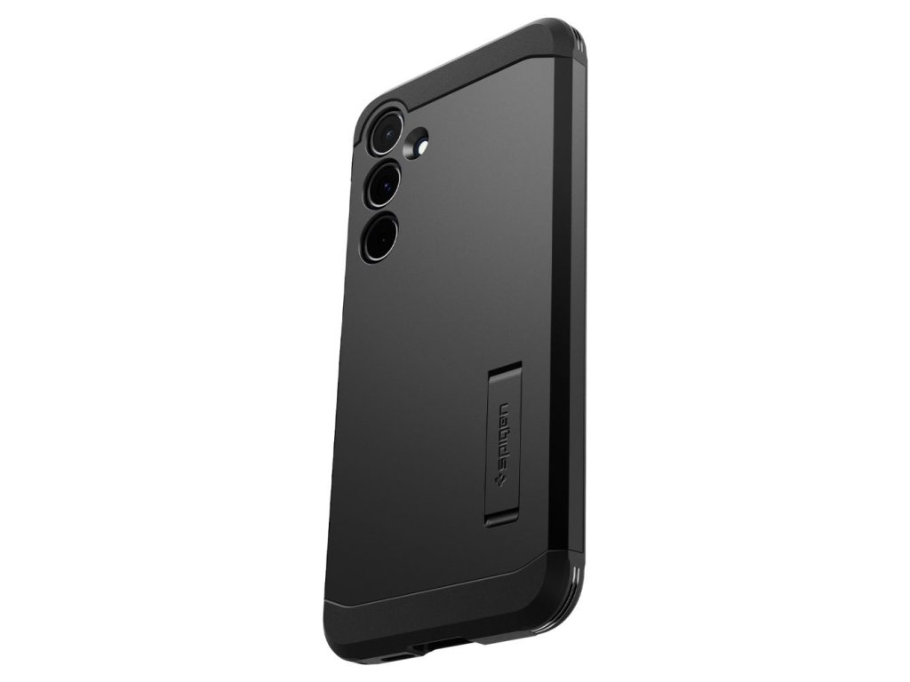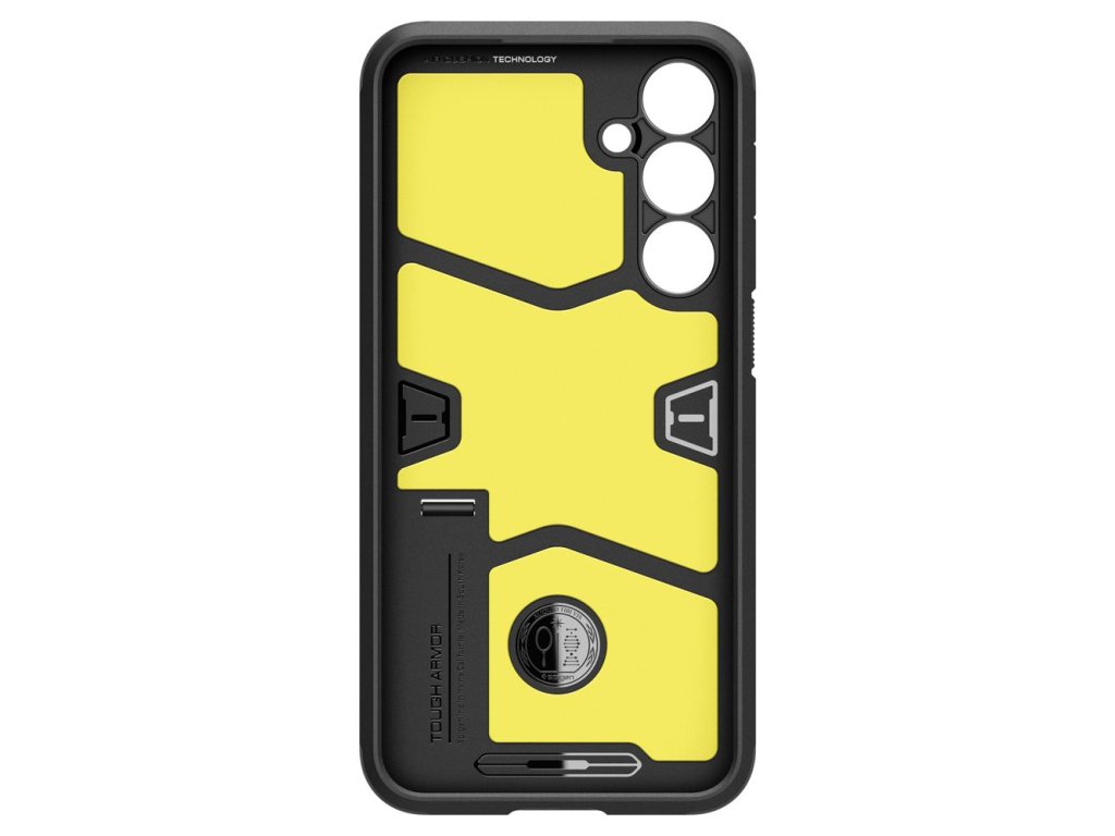 Kryt Spigen Tough Armor pro Samsung Galaxy A55 5G, vyrobený z TPU gelu a černého polykarbonátu, zabraňuje náhodnému sklouznutí a je odolný vůči opotřebení.