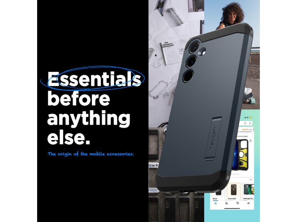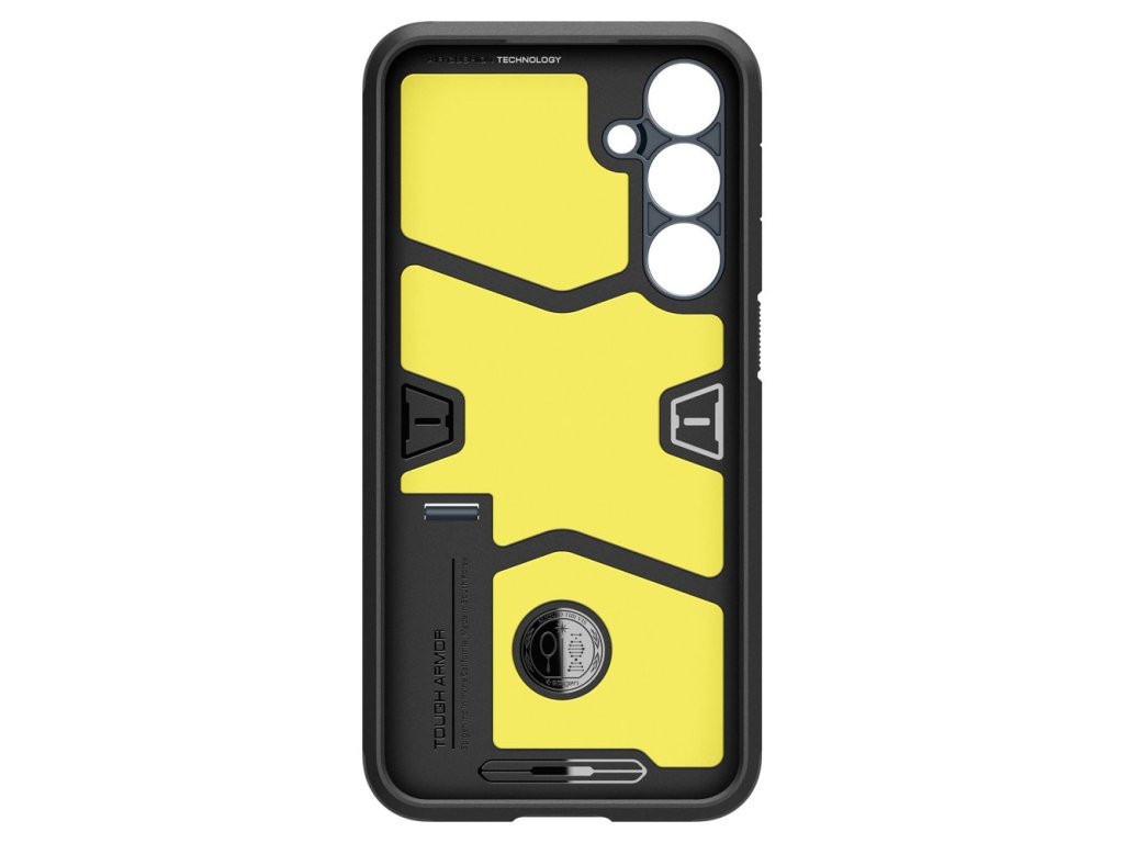 Kryt Spigen Tough Armor pro Samsung Galaxy A55 5G, vyrobený z TPU gelu a černého polykarbonátu, zabraňuje náhodnému sklouznutí a je odolný vůči opotřebení.