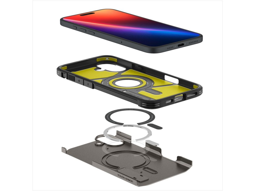 Spigen Tough Armor MagSafe extra odolný kryt pro iPhone 16 - tmavý kovový (Gunmetal)