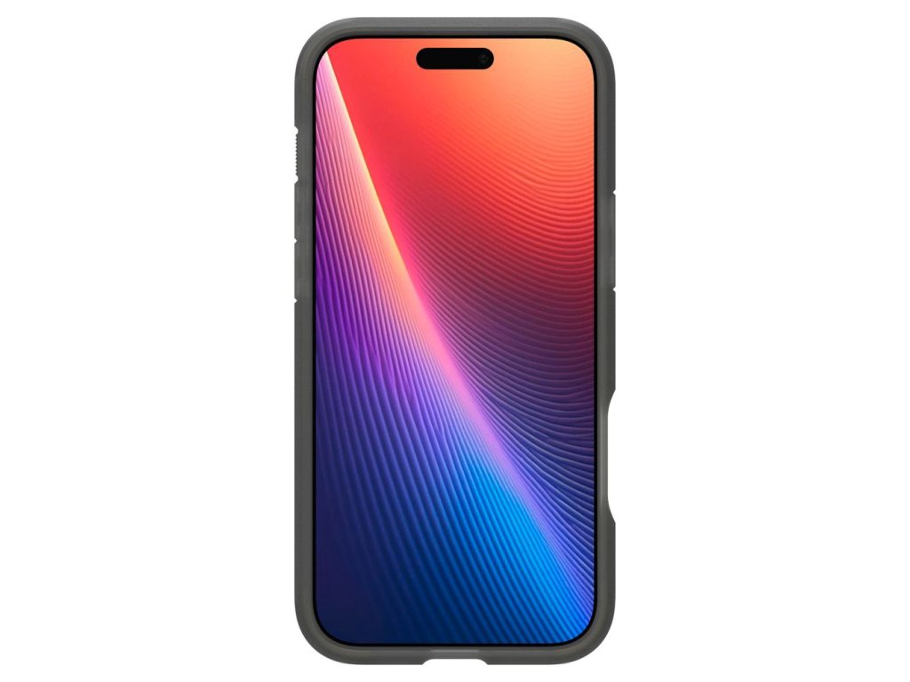 Kryt Spigen Tough Armor pro iPhone 16 Pro Max, vyrobený z TPU gelu a černého polykarbonátu, zabraňuje nechtěnému sklouznutí a je odolný proti opotřebení.