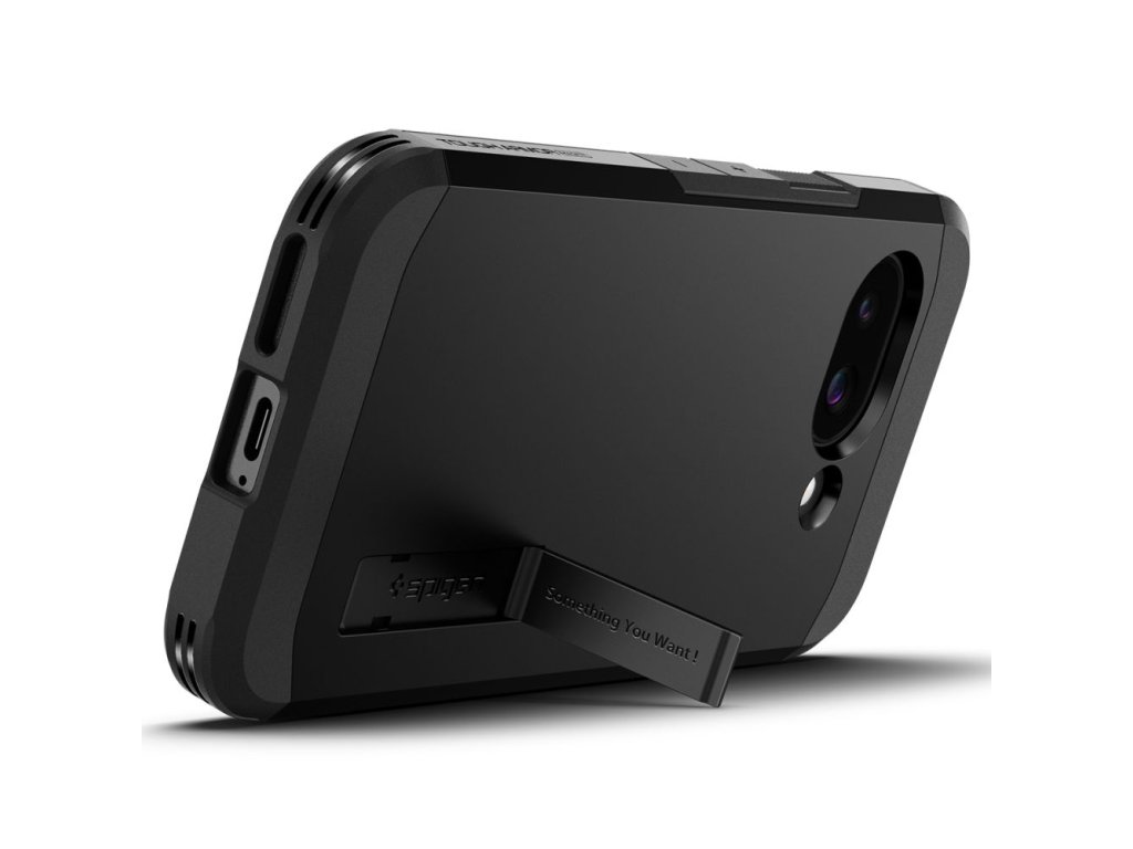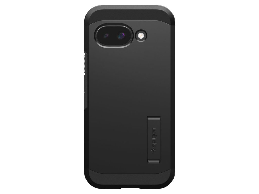 Pouzdro Spigen Tough Armor pro Google Pixel 9a, vyrobené z TPU gelu a černého polykarbonátu, zabraňuje nechtěnému sklouznutí a je odolné proti opotřebení.