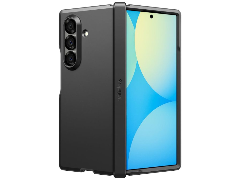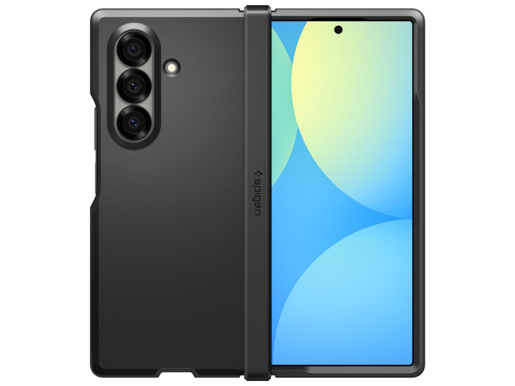 Pouzdro Spigen Tough Armor pro Samsung Galaxy Z Fold7, vyrobené z TPU gelu a černého polykarbonátu, zabraňuje nechtěnému sklouznutí a je odolné vůči opotřebení.