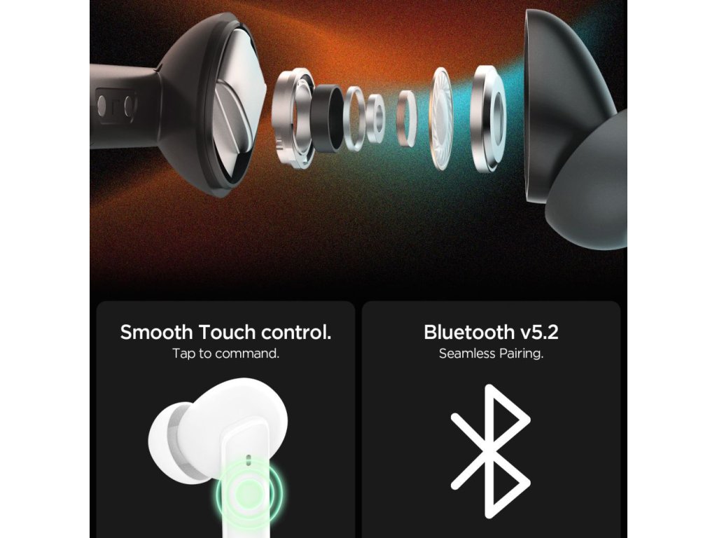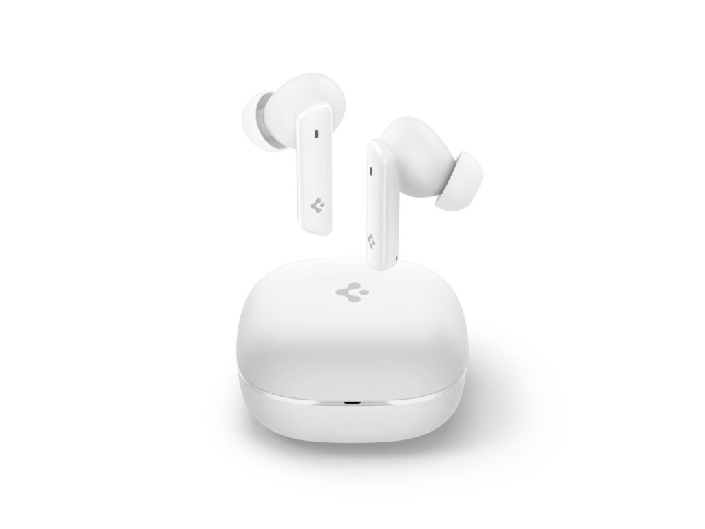 Spigen - Wireless Earbuds (SA2402) bezdrátová sluchátka Bluetooth 5.3 s aktivním potlačením hluku, mikrofonem, nízkou latencí a aplikací Spigen Audio - bílá