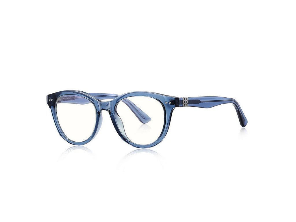 Techsuit – Anti-Blue Light Glasses Reflex PC brýle proti modrému světlu kulaté TR90 a kovový rám AC čočky – transparentní modré