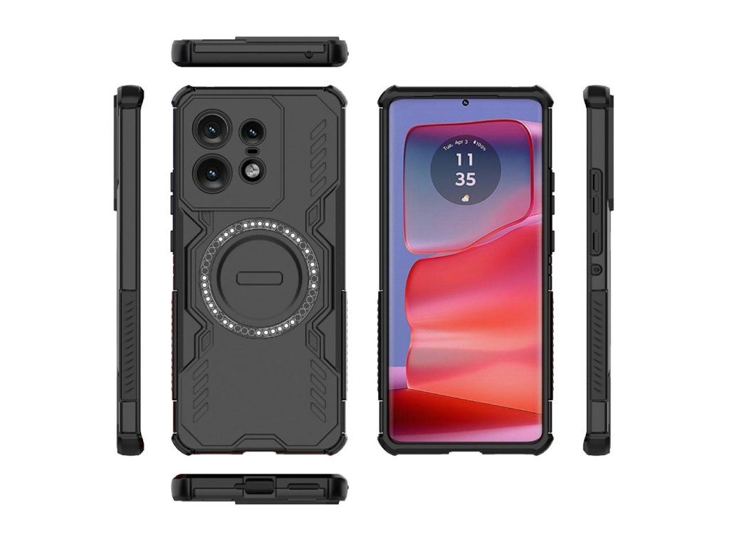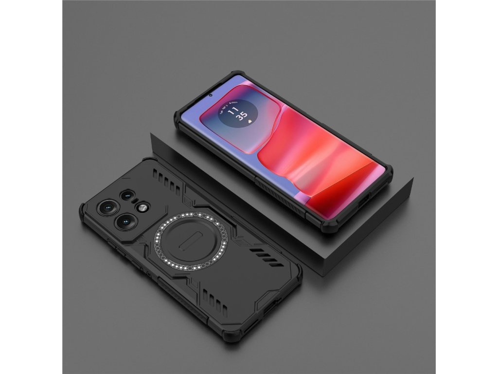 Nárazuvzdorné pouzdro Motorola Edge 50 Pro ArmorMag Case kombinuje robustní vzhled s futuristickými liniemi a high-tech detaily s protiskluzovou texturou pro bezpečné a pohodlné držení.