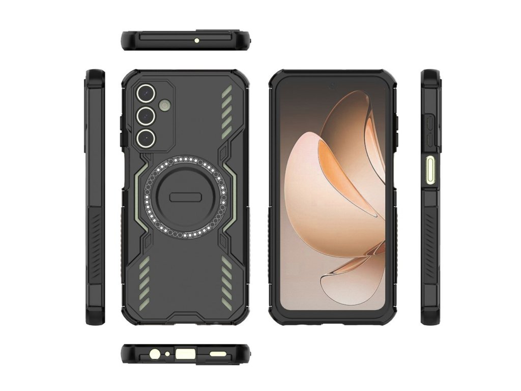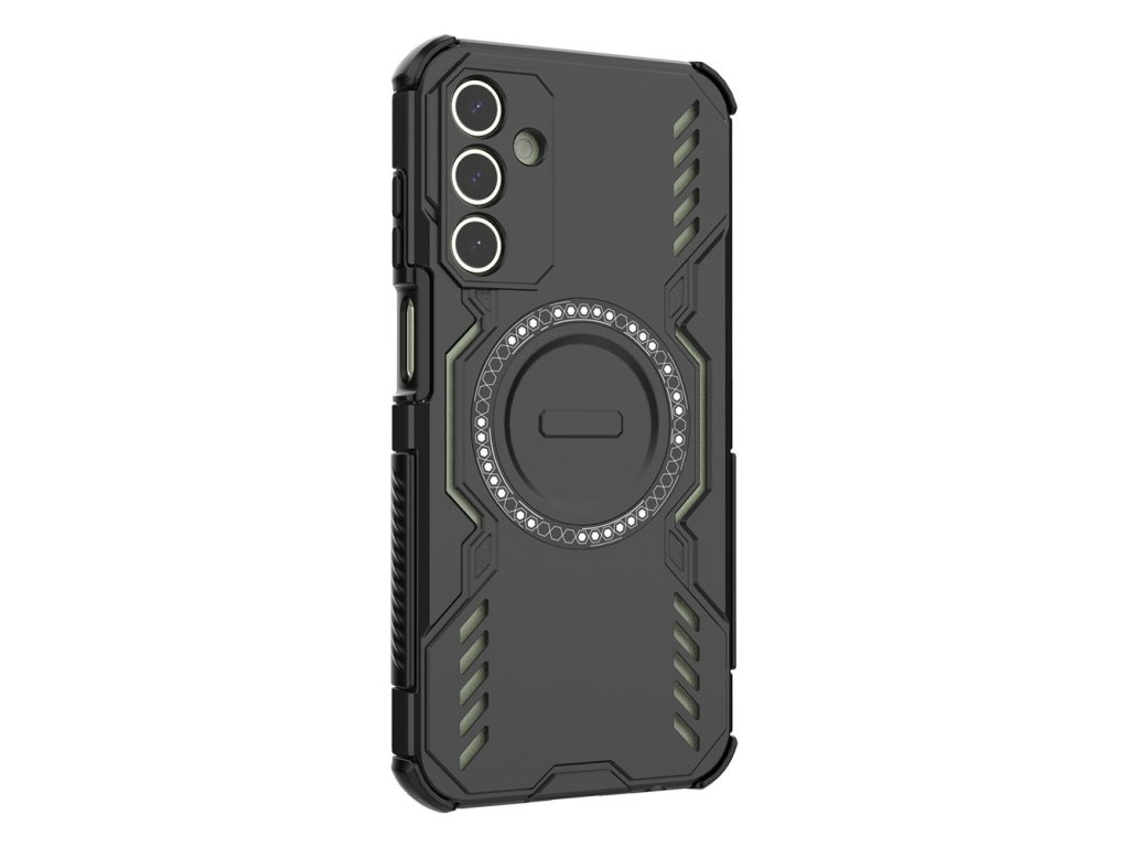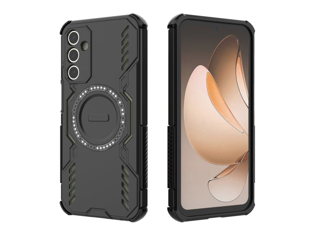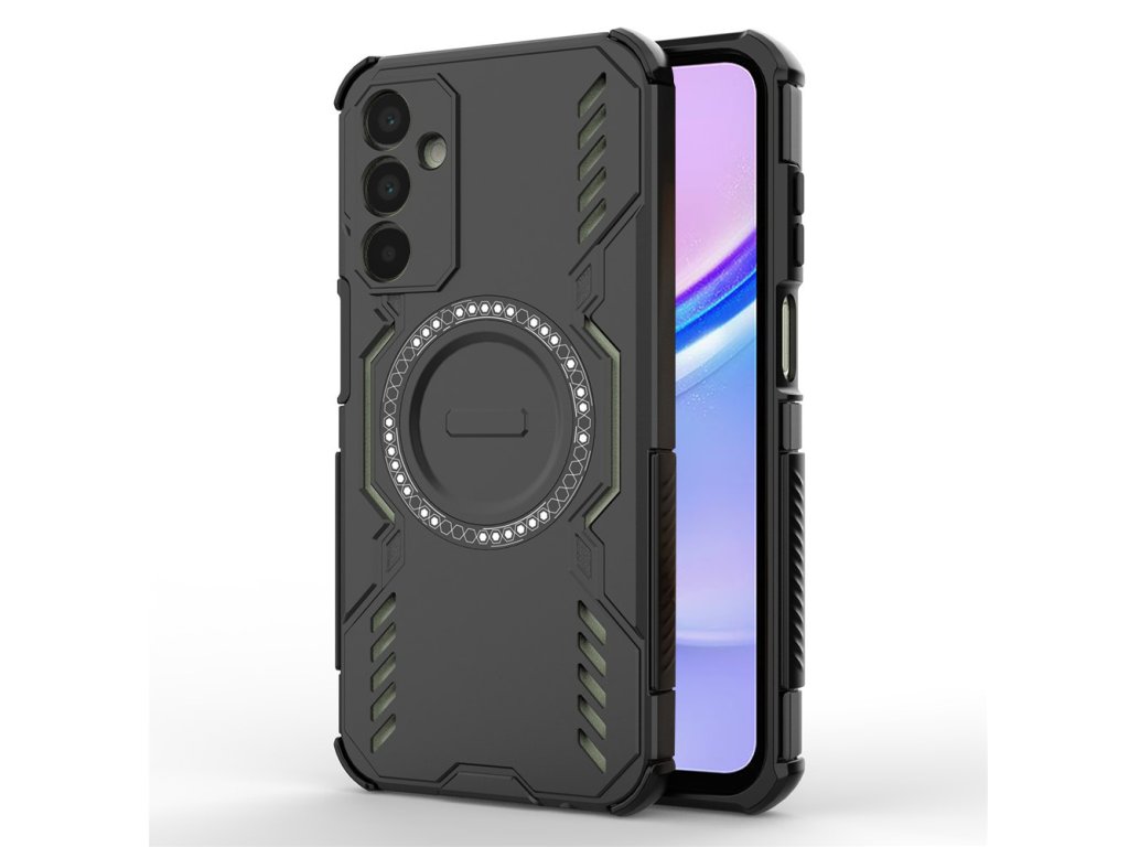 Antishock pouzdro Samsung Galaxy A15 4G ArmorMag Case kombinuje robustní vzhled s futuristickými liniemi a technologickými detaily s protiskluzovou texturou pro bezpečné a pohodlné držení.
