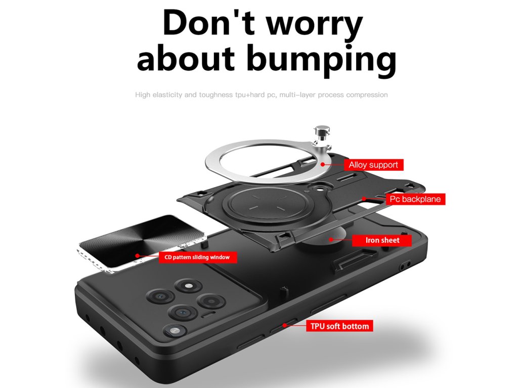 Výkon fotoaparátů je jedním z důvodů, proč často měníte telefon? Pak by jejich ochrana měla být důležitým kritériem při výběru budoucího pouzdra. Toto pouzdro má zasouvatelný rám, který volitelně zakrývá čočky. Neváhejte! Efektivní design značky Techsuit je náš dárek pro vás!