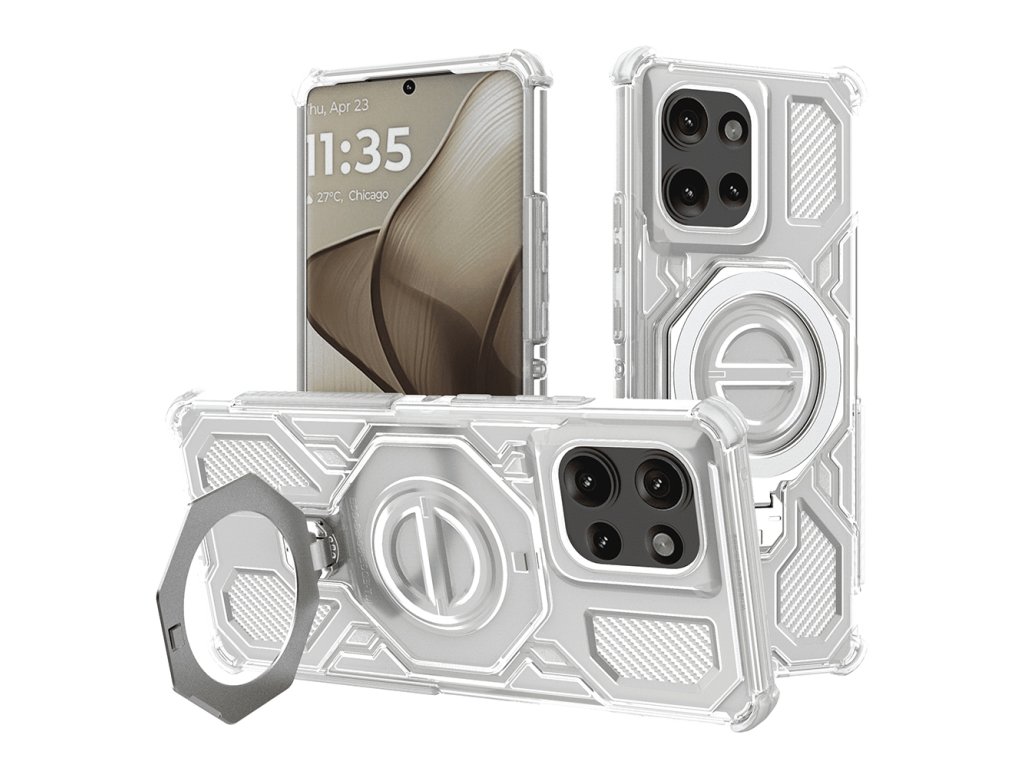 Kroužek pouzdra Motorola Edge 50 je otočný o 360° a sklopitelný o 120°, přeměňuje se na stojánek typu kickstand.
