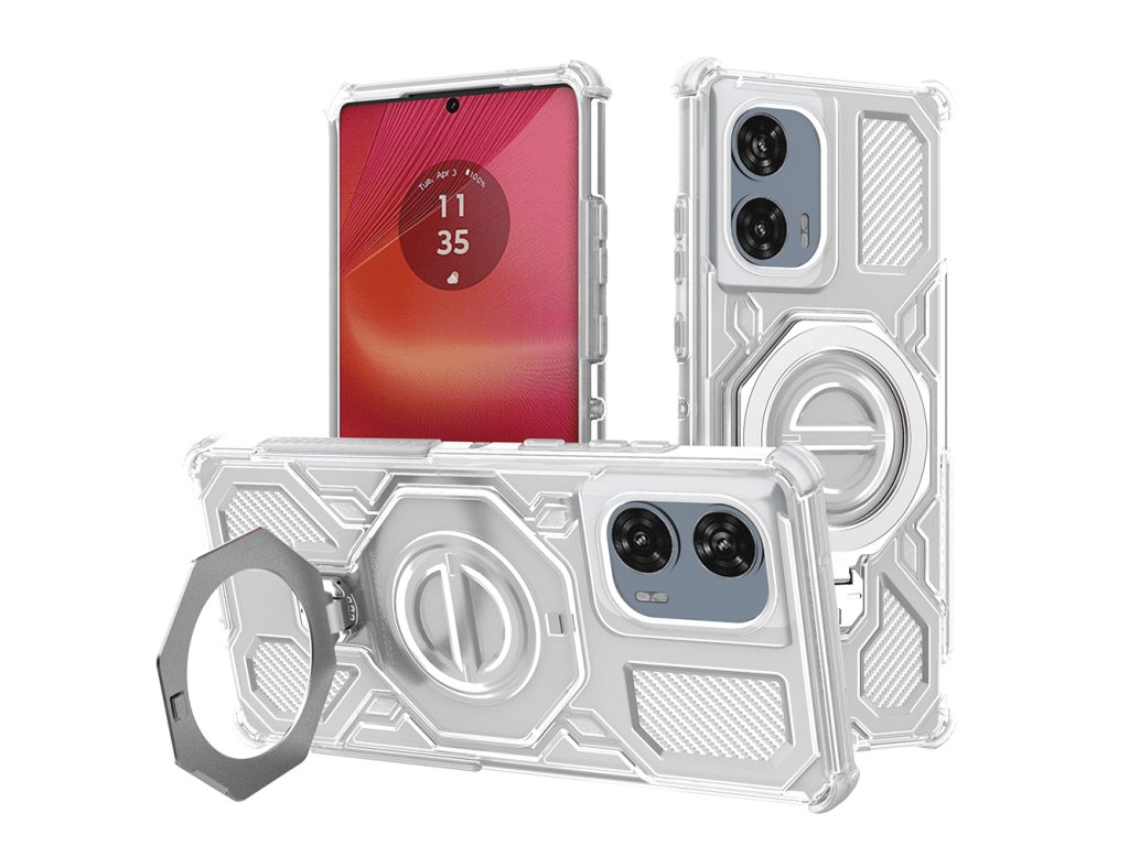 Kroužek pouzdra Motorola Edge 50 Fusion je otočný o 360° a sklopný o 120°, což ho transformuje na stojan typu kickstand.