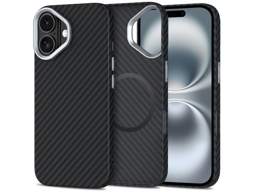 Techsuit – CarbonHalo MagSafe obal na iPhone 16 – černý