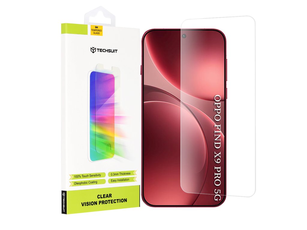 Skleněná fólie Oppo Find X9 Pro⭐originální Techsuit je nejlepší volbou pro ochranu obrazovky. Prémiová. 9H. Přátelská k pouzdru. Pouze výhody!